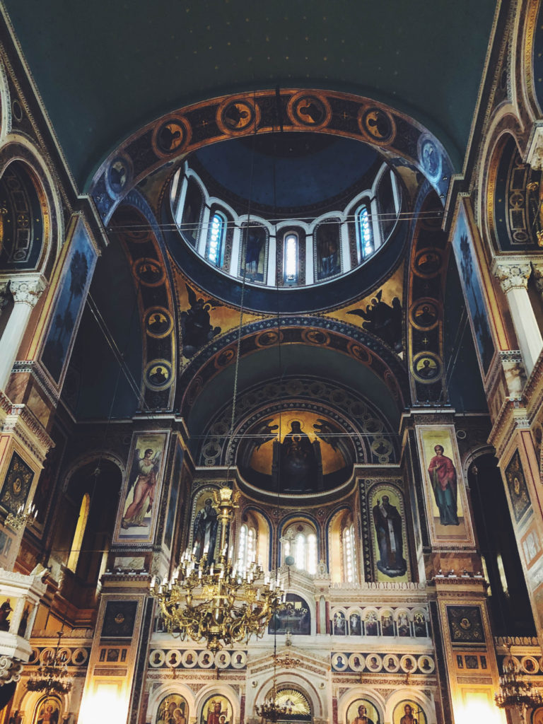 ミトロポレオス大聖堂です。ロシア正教会と似ていいて、壁画が豪華絢爛です。でもやっぱり、教会内って落ち着く。ここで一休み。