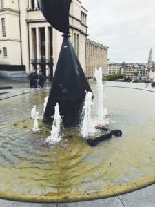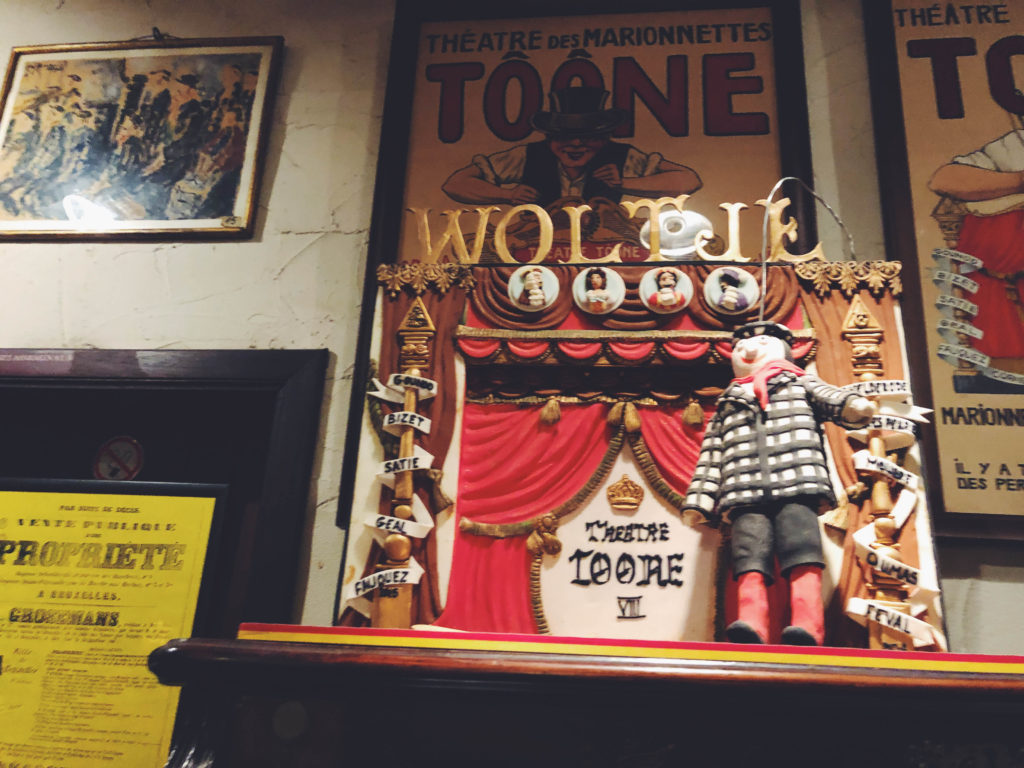 どうしてもお腹が減っていたので何か食べようと、駅構内をうろうろしていたらなんと寿司が売られていました。なんだかスタイリッシュな寿司に感激して買ってしまいました。そして、お寿司を口に入れた瞬間、びっくり。なんと、レタスでお寿司が巻かれていたのです。そんでもって、割り箸ならぬ、割れない箸でした笑 そして、ベルギーといえばチョコレート。濃厚で本当に美味しかったです。甘いもの食べて、幸先いい感じ♪宿に向かいます。今日の宿は、ゲストハウス。グランプラスという観光地の中心に位置しているところです。石畳になっているので、スーツケースを運ぶのも一苦労。ガラガラ引きずって到着です。チェックインしたら、前から予約していた人形劇を見に行きます。ベルギーでは、人形劇が有名らしいのです。