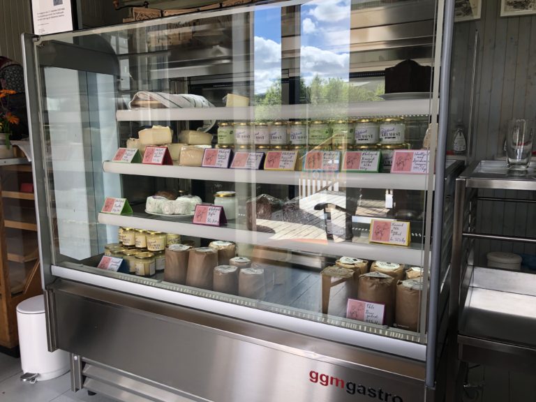 チーズ工房では、外側から作っている様子を見ることができるので、色々とおばさん(Ellen Marieという名前)に質問をしていました。すると、「ちょっと待ってて」と言ってEllenが工房の中に入り、ノルウェー語で従業員の方とお話をしています。そして、帰ってきたEllenが一言。「これからブラウンチーズを作るから、一緒に作っていいって。」「ん??え??どういうこと??」外側から見学して、ブラウンチーズの作り方を学ぼうとは思っていましたが、急遽一緒に作らせてもらうことに!!なんて優しい人。